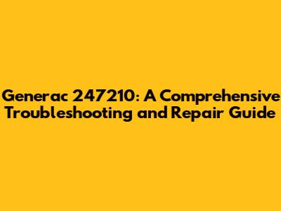 Generac 247210: Troubleshooting And Repair Guide