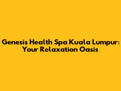 Genesis Health Spa Kuala Lumpur: Your Relaxation Oasis