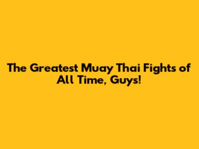 Greatest Muay Thai Fights Ever