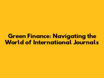 Green Finance: Your Guide To International Journals