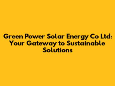 Hey guys! Are you ready to dive into the world of Green Power Solar Energy Co Ltd? If you're even remotely interested in harnessing the sun's energy to power your life, you've landed in the right spot. In this article, we'll explore everything you need to know about Green Power Solar Energy, from what they do to why they might just be the perfect partner for your solar journey. So, buckle up and let’s get started!