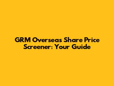 GRM Overseas Share Price Screener: Your Guide