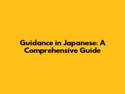 Guidance In Japanese: A Comprehensive Guide