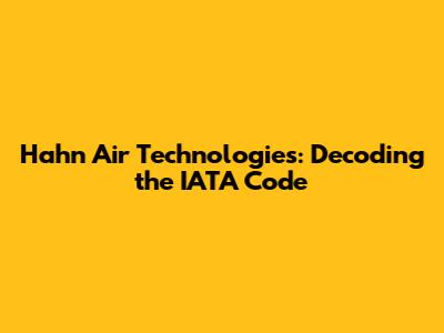 Hey guys, let's dive into something super specific today: the IATA code for Hahn Air Technologies. If you're in the travel industry, or even just a frequent flyer who likes to know the nitty-gritty details, you've probably come across IATA codes. They're those three-letter identifiers that are crucial for airlines, travel agents, and booking systems. So, what's the deal with Hahn Air Technologies and its code? Let's break it down.
