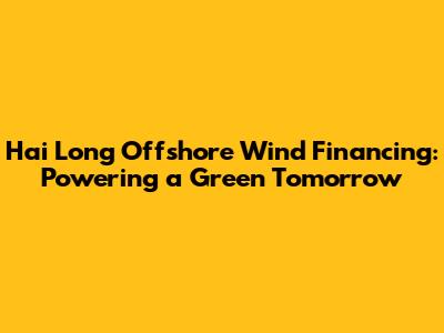 Hey guys! Let's dive into something super interesting and important: Hai Long offshore wind financing. This project is a big deal, and understanding how it's being funded gives us a sneak peek into the future of renewable energy. We're talking about massive investments, complex financial structures, and the global push towards a greener planet. So, buckle up; we're about to explore the ins and outs of how this ambitious wind farm is making its mark on the energy landscape. Let's get started, shall we?