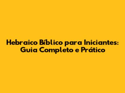 Hebraico Bíblico Para Iniciantes: Guia Completo E Prático