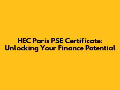 HEC Paris PSE Certificate: Your Finance Career Booster