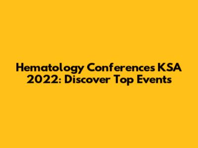 Let's explore some of the top hematology conferences in KSA 2022. While specific details might vary, these events generally focus on a range of topics, including: