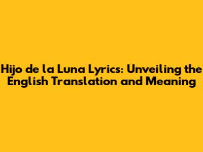 Hijo De La Luna Lyrics: An English Translation And Analysis