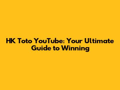 HK Toto YouTube: Your Ultimate Guide