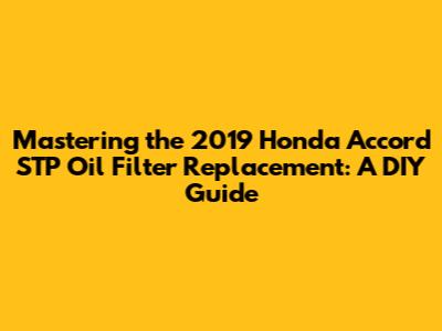Hey guys! Ever wondered about tackling that oil filter change on your 2019 Honda Accord yourself? Well, you're in the right place! Today, we're diving deep into the nitty-gritty of replacing the STP oil filter on your trusty ride. It might sound a bit intimidating, but trust me, with a little guidance, you'll be a pro in no time. We'll cover everything from gathering your tools to the final tightening, ensuring your Accord's engine stays happy and healthy. This isn't just about slapping on a new filter; it's about understanding the why behind it and the benefits of using a quality filter like STP. We'll break down the process step-by-step, making it super easy to follow, even if you're a total beginner. So, grab your wrench, put on some tunes, and let's get this done!