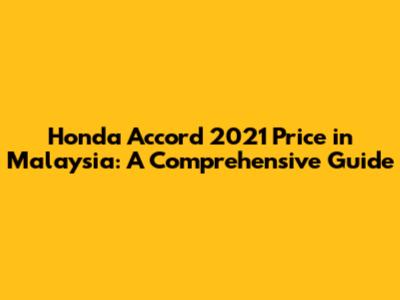 Honda Accord 2021 Price In Malaysia: A Comprehensive Guide