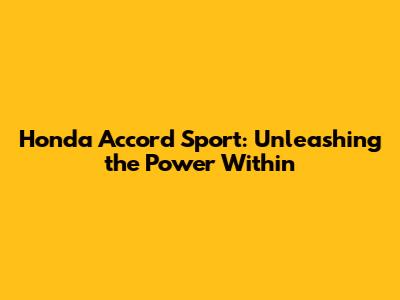 Honda Accord Sport: Engine Specs & Performance