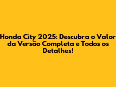 Quanto Custa o Honda City 2025 Completo?