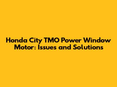 Honda City TMO Power Window Motor: Issues And Solutions