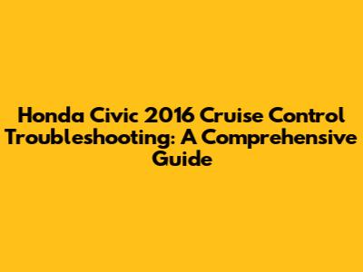 Honda Civic 2016: Cruise Control Not Working? Fix It!