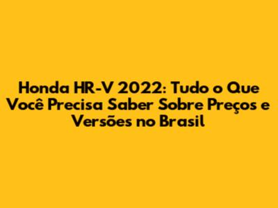 Preços do Honda HR-V 2022 no Brasil: Quanto Custa?