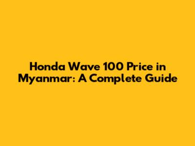 Honda Wave 100 Price In Myanmar: A Complete Guide