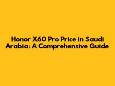 Honor X60 Pro Price In Saudi Arabia: A Comprehensive Guide