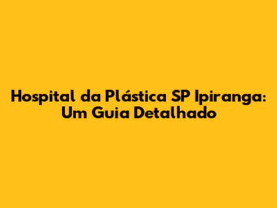Hospital Da Plástica SP Ipiranga: Seu Guia Completo