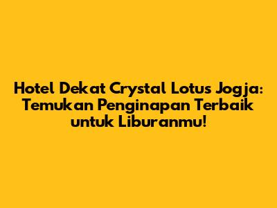 Hai guys! Jika kalian berencana liburan ke Jogja dan ingin menjelajahi keindahan Crystal Lotus yang memukau, kalian berada di tempat yang tepat! Artikel ini akan membantumu menemukan hotel dekat Crystal Lotus Jogja yang paling pas untuk kebutuhanmu. Kami akan membahas berbagai pilihan penginapan, mulai dari yang mewah hingga yang ramah di kantong, sehingga liburanmu semakin berkesan dan tak terlupakan. Mari kita mulai petualangan mencari penginapan terbaik!