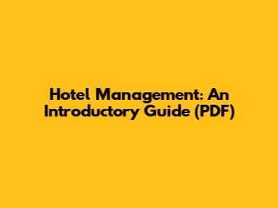 Hotel Management: An Introductory Guide (PDF)