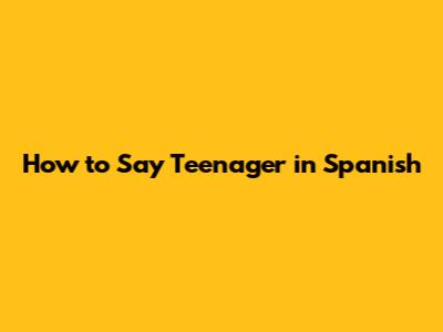 How To Say Teenager In Spanish