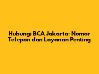Hubungi BCA Jakarta: Nomor Telepon Dan Layanan Penting