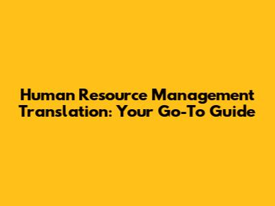 Human Resource Management Translation: A Comprehensive Guide