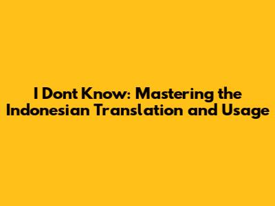 I Don't Know: Bahasa Indonesian Translation & Usage Guide