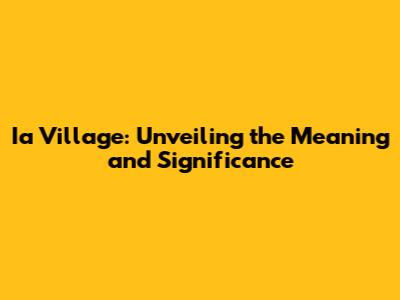 Ia Village: Unveiling The Meaning And Significance