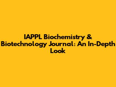 IAPPL Biochem & Biotech Journal: All You Need To Know