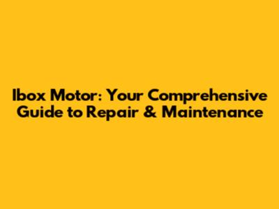 Ibox Motor: Your Comprehensive Guide To Repair & Maintenance