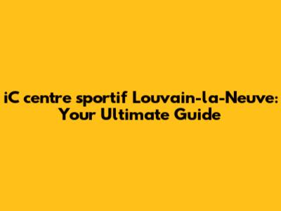 IC Centre Sportif Louvain-la-Neuve: Your Ultimate Guide