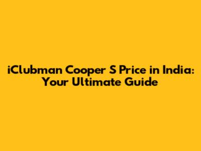 Hey guys! Are you curious about the iClubman Cooper S price in India? You're in the right place! This guide dives deep into everything you need to know about the price of this awesome car, along with its features, and what makes it such a head-turner on Indian roads. We'll break down the pricing, explore the different aspects that influence the cost, and give you a clear picture of what to expect when you're considering buying an iClubman Cooper S in India. So, buckle up, and let's get started!