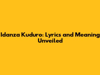 Idanza Kuduro: Lyrics And Meaning Unveiled