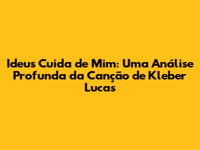 Ideus Cuida De Mim: Análise Da Música De Kleber Lucas