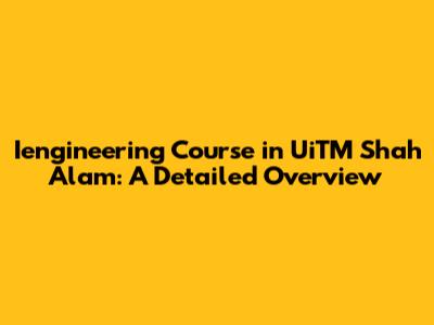 Iengineering Course In UiTM Shah Alam: A Detailed Overview