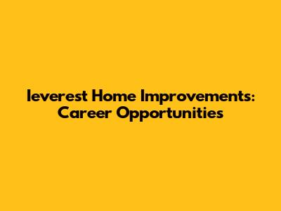 Ieverest Home Improvements: Career Opportunities