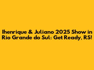 Hey guys! Are you ready for some seriously good music and an unforgettable experience? If you're a fan of the incredible duo Ihenrique & Juliano, then mark your calendars because they're bringing their sensational show to Rio Grande do Sul (RS) in 2025! Get ready for a night filled with amazing songs, good vibes, and memories that'll last a lifetime. In this article, we'll dive into everything you need to know about the Ihenrique & Juliano show in 2025 in RS, from what to expect to how to snag your tickets. So, buckle up, music lovers, because we're about to embark on an exciting journey into the world of sertanejo music!