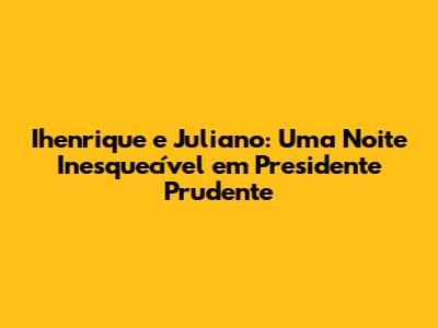 Ihenrique e Juliano, uma das duplas sertanejas mais amadas do Brasil, conquistaram corações por todo o país com suas canções apaixonadas e shows eletrizantes. E, para os fãs da região de Presidente Prudente, a espera acabou! O show da dupla na cidade promete ser um evento memorável, reunindo multidões e proporcionando uma experiência única. Prepare-se para uma noite de muita música, emoção e momentos inesquecíveis. Neste artigo, vamos explorar tudo sobre o show Ihenrique e Juliano em Presidente Prudente, desde os detalhes da apresentação até as expectativas dos fãs e dicas para aproveitar ao máximo essa experiência.