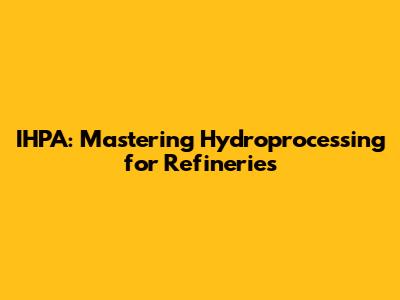 IHPA: Mastering Hydroprocessing For Refineries