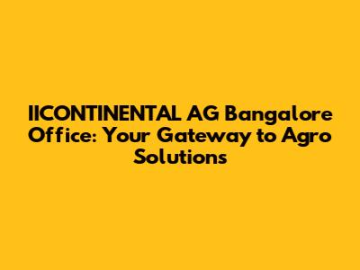 Hey guys! Ever wondered about the magic behind getting top-notch agricultural solutions? Well, let's dive into the heart of it all – the IICONTINENTAL AG Bangalore office! This isn't just another office; it's a hub where innovation meets agriculture, and where solutions are crafted to boost your farming game. So, buckle up as we explore what makes this place tick and why it's essential for anyone serious about modern agriculture.