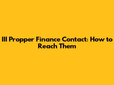 III Propper Finance Contact: How To Reach Them