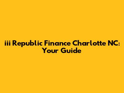 Iii Republic Finance Charlotte NC: Your Guide