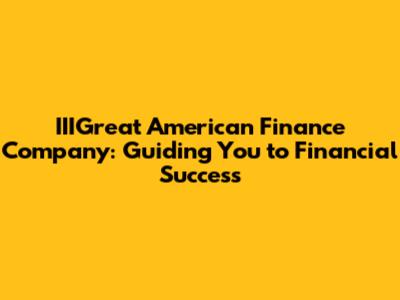 Hey there, finance enthusiasts! Ever heard of IIIGreat American Finance Company? If not, you're in for a treat! We're diving deep into the world of this financial powerhouse, exploring what makes them tick, what services they offer, and how they might just be the financial partner you've been looking for. So, buckle up, grab your favorite beverage, and let's get started!