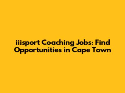 Iiisport Coaching Jobs: Find Opportunities In Cape Town