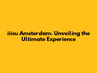 Iiisu Amsterdam: A Guide To The Ultimate Experience