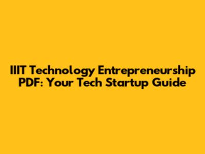 IIIT Entrepreneurship PDF: Your Tech Startup Guide