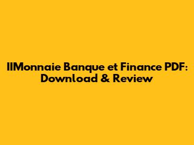 IIMonnaie Banque Et Finance PDF: Download & Review